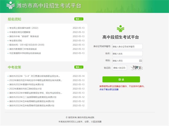 濰坊市高中段招生考試平臺(tái)