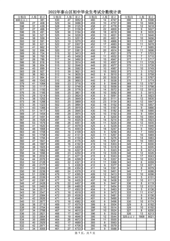 山東技校網(wǎng) >> 菁菁校園 >> 2022泰安中考一分一段表公布了