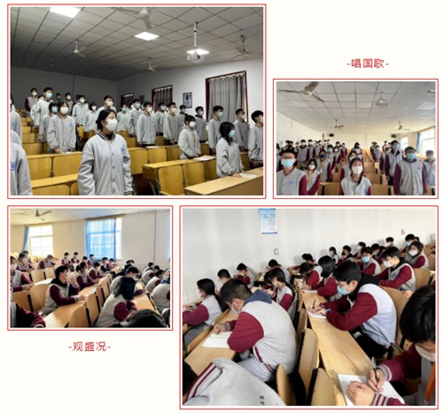 大會開幕后,全體同學都沉浸在黨的二十大勝利召開的喜悅氛圍當中,同學們,在大會開幕時同大會現(xiàn)場直播進度,一同起立,奏唱國歌。
