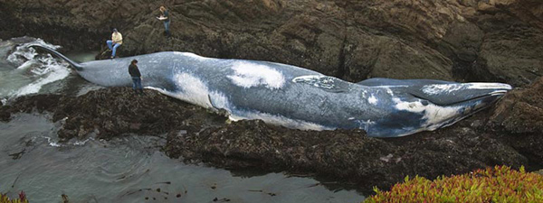 10月20日晚,人們?cè)诩又荼辈亢0抖鄮r石的海灣發(fā)現(xiàn)了一頭體長(zhǎng)21.3米的雌性巨型藍(lán)鯨的尸體。美國(guó)海洋暨大氣總署海洋漁業(yè)服務(wù)的野生動(dòng)植物學(xué)家喬·科爾達(dá)羅表示,此前一艘海洋測(cè)量船報(bào)告在幾英里遠(yuǎn)的地方撞上了一頭鯨魚,幾個(gè)小時(shí)后人們便在這里發(fā)現(xiàn)了這頭鯨魚。