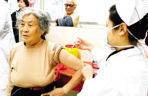 昨天上午11點,78歲的王桂英和80歲的薛冰老兩口,在打完甲型H1N1流感疫苗之后坐在椅子上觀察。從8點起,濟(jì)南市歷下區(qū)人民醫(yī)院負(fù)責(zé)免疫接種的工作人員就開始了忙碌。根據(jù)安排,從昨天開始,這里開始為65歲以上并患有慢性病的老人免費注射甲流疫苗。