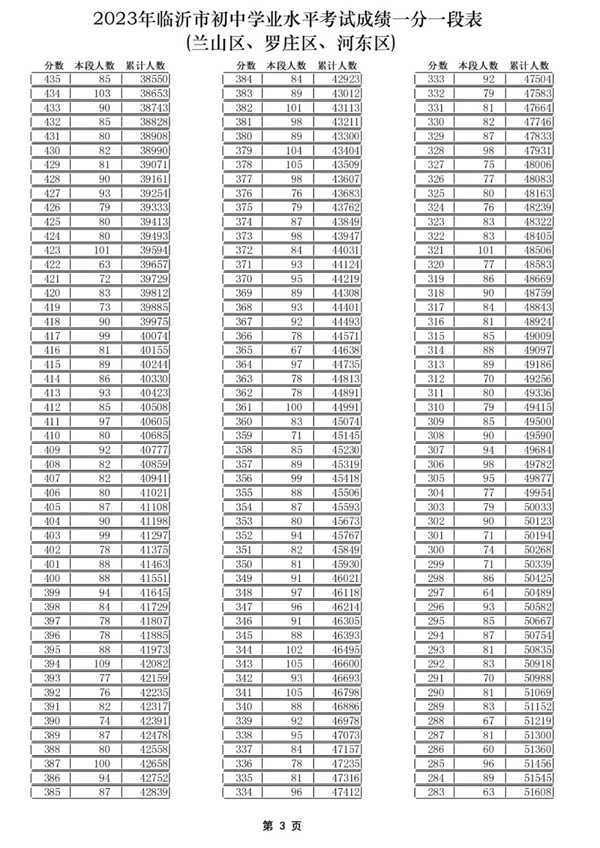 山東技校網(wǎng) >> 菁菁校園 >> 2023年臨沂市初中學(xué)業(yè)水平考試成績一分一段表(三區(qū))