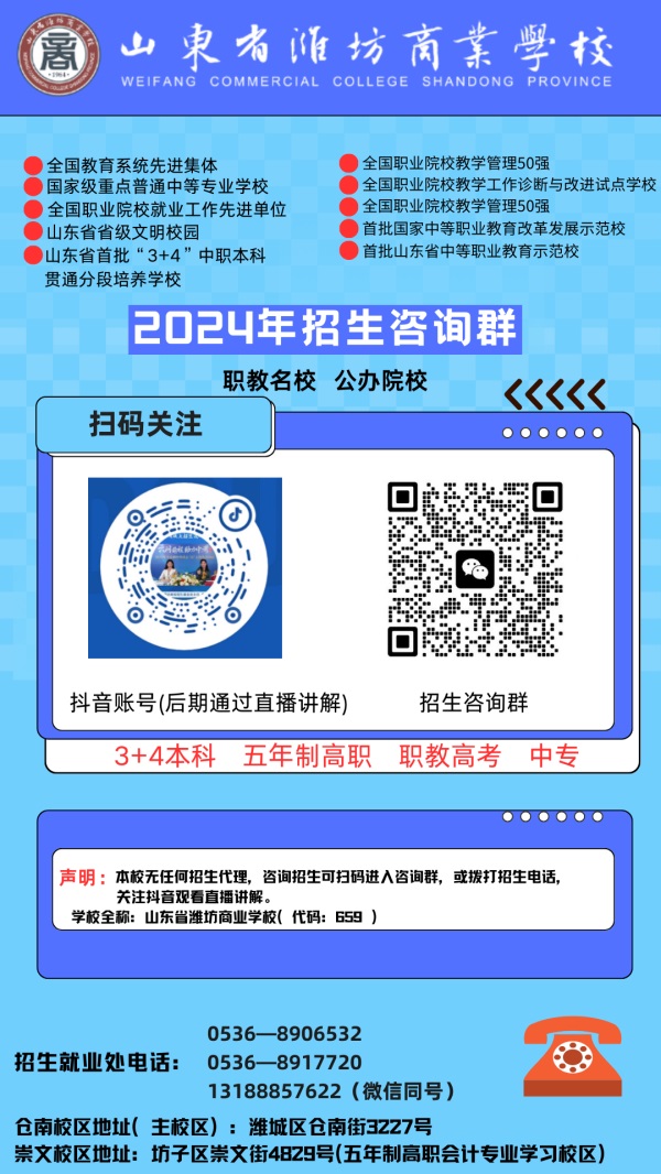 在這個信息時代,山東省濰坊商業(yè)學(xué)校積極擁抱新技術(shù),開通了抖音直播群和咨詢?nèi),搭建起與學(xué)生、家長及社會各界溝通的橋梁。