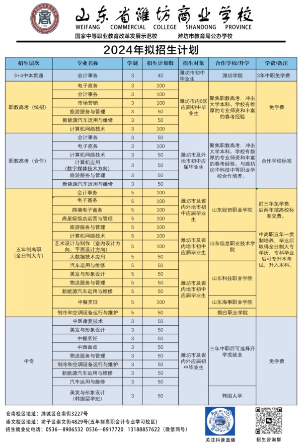 山東技校網(wǎng) >> 菁菁校園 >> 2024年山東省濰坊商業(yè)學(xué)校擬招生計劃公布了!