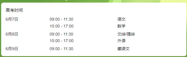 2024年西藏高考時(shí)間