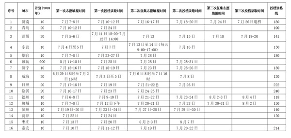 (2)省內(nèi)其他地市的錄取及安排(參考2023年) 資格線是指達(dá)到此分?jǐn)?shù)有資格報(bào)考。具體志愿填報(bào)錄取時(shí)間以2024年各地招生考試院公布時(shí)間為準(zhǔn)。