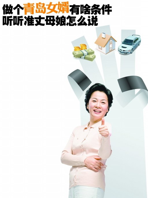 對(duì)女婿的要求:好是青島人,因?yàn)楸镜厝说娜似泛脡,我一打?tīng)一個(gè)準(zhǔn);外地人不好打聽(tīng),摸不準(zhǔn),萬(wàn)一有個(gè)閃失,女兒的幸福就毀了。依我看,房子和車一樣也不能少。這也是小伙子能力的體現(xiàn),只有條件好了,我女兒嫁過(guò)去才能生活幸福,不然,我真不放心。