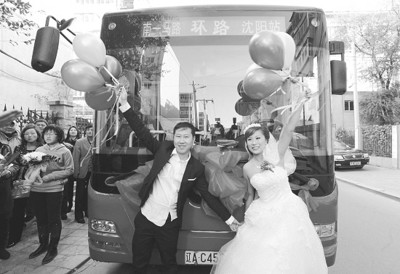 沈陽(yáng)一對(duì)新人舉行公交車婚禮
