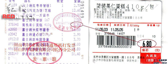 紅網(wǎng)長沙5月4日訊(記者吳庠)“一塊蛋糕多收3元錢是小事,但一個企業(yè)的商業(yè)操守是大事!苯,長沙市民陳先生向紅網(wǎng)“消費(fèi)維權(quán)”頻道(http://315.rednet.cn/)反映,長沙大潤發(fā)超市部分商品仍存在“低標(biāo)價格、高價結(jié)賬”的現(xiàn)象。