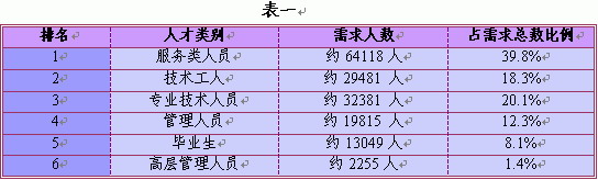 5、人才類別:服務(wù)類人員需求數(shù)目居首