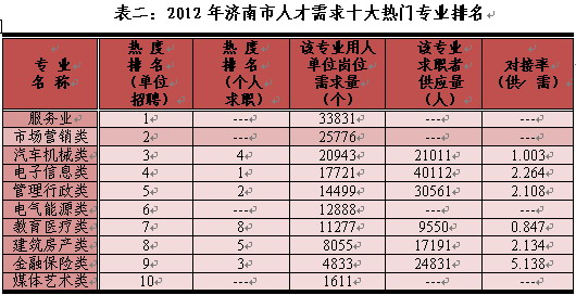 我市實體經(jīng)濟發(fā)展呈良好態(tài)勢,高新區(qū)和東部工業(yè)區(qū)、西部工業(yè)區(qū)、北部工業(yè)區(qū)等“一高三區(qū)”的工業(yè)布局在2013年逐步優(yōu)化,將吸引實力強、規(guī)模大的企業(yè)來濟投資興業(yè),招賢納才;“5150引才倍增計劃”的實施將帶動我市對中、高端人才的持續(xù)需求;萬達、恒隆、和諧廣場等大型城市綜合體的良好運營、西部新城的加快建設(shè)及多宗國有土地使用權(quán)招牌掛出讓成交將增加企業(yè)對服務(wù)、市場營銷及土木工程等各類人才的大量需求;軟件出口創(chuàng)新、服務(wù)外包、集成電路設(shè)計、游戲動漫發(fā)展4個國家級基地,CIIIC、創(chuàng)業(yè)服務(wù)中心、齊魯軟件園3個國家級園區(qū),“濟南藥谷”及“一平臺、一基地、一園區(qū)”(國家綜合性新藥研發(fā)技術(shù)大平臺、國家創(chuàng)新藥物孵化基地、濟南生物醫(yī)藥產(chǎn)業(yè)園)的建設(shè)將帶動我市對電子信息、藝術(shù)設(shè)計、生物醫(yī)藥等相關(guān)專業(yè)中、高端人才的不小需求;第十屆“中國藝術(shù)節(jié)”的舉辦、“泉城文化人才培養(yǎng)工程”的實施、以“齊魯文化創(chuàng)意基地”、“齊魯七賢文化城”為代表的文化產(chǎn)業(yè)園及基地的建設(shè)以及百年商埠風(fēng)情區(qū)、溫泉度假、西客站萬達廣場等7個過億元大項目簽約落戶濟南,將刺激我市對社會科學(xué)、新聞出版、廣播影視、文化藝術(shù)和文物保護、文化經(jīng)營管理、文化科技、旅游管理、金融服務(wù)等類領(lǐng)域人才的迫切需求。