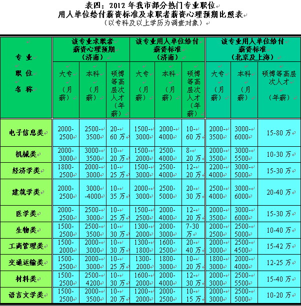 雖然今年一些用工單位提高了求職者的薪酬福利,但大部分未隨物價水平及時調(diào)整,我市部分熱門專業(yè)職位用人單位給付薪資標(biāo)準(zhǔn)和求職者薪資心理預(yù)期仍存在一定偏差,使人才供求出現(xiàn)兩難局面;與京、滬等大城市相比,我市用工單位薪資給付標(biāo)準(zhǔn)相對較低,導(dǎo)致部分人才外流,特別是海內(nèi)外高層次人才選擇多傾向一線城市,如何吸引及留住人才仍是我市今后人才工作的一項重要任務(wù)(表四)。
