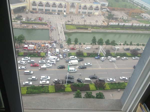 2013年7月15日,唐山市路北區(qū)圣典巴厘島附近有發(fā)現(xiàn)跳河輕生,唐山武警,公安來到現(xiàn)場(chǎng),救助跳水人員。