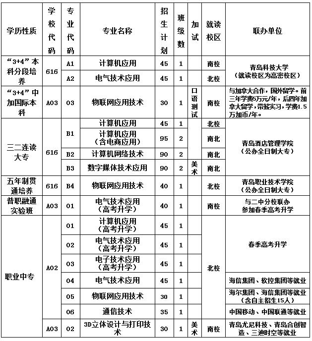 普職轉(zhuǎn)換:與青島二中分校聯(lián)辦,學(xué)習(xí)普通高中和電氣技術(shù)應(yīng)用專業(yè)骨干專業(yè)課程,學(xué)習(xí)優(yōu)秀者可調(diào)至青島二中分校學(xué)習(xí)。
