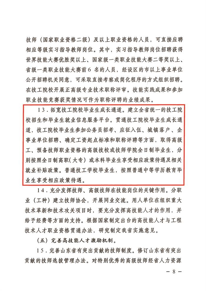 根據(jù)山東省人力資源和社會保障廳等部門發(fā)布的魯人社發(fā)【2016】22號文件,在參加公務(wù)員招考、應(yīng)征入伍、企事業(yè)單位招聘、確定工資起點標(biāo)準(zhǔn)和職稱評聘、就業(yè)補貼政策等方面,預(yù)備技師享受本科生待遇。