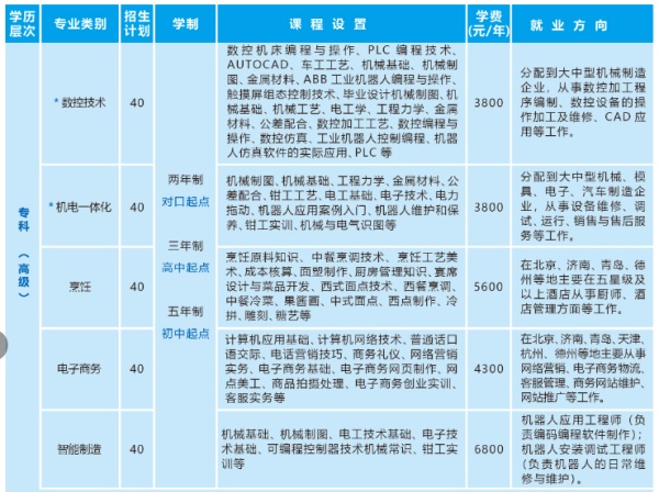 專科(高級(jí)):數(shù)控、機(jī)電:1600元/年;烹飪:2100元/年;電子商務(wù):1100元/年。