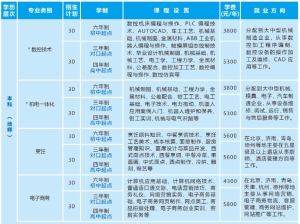 帶“*”專業(yè)為山東省品牌專業(yè),學(xué)制最后一年雜費(fèi)減免。