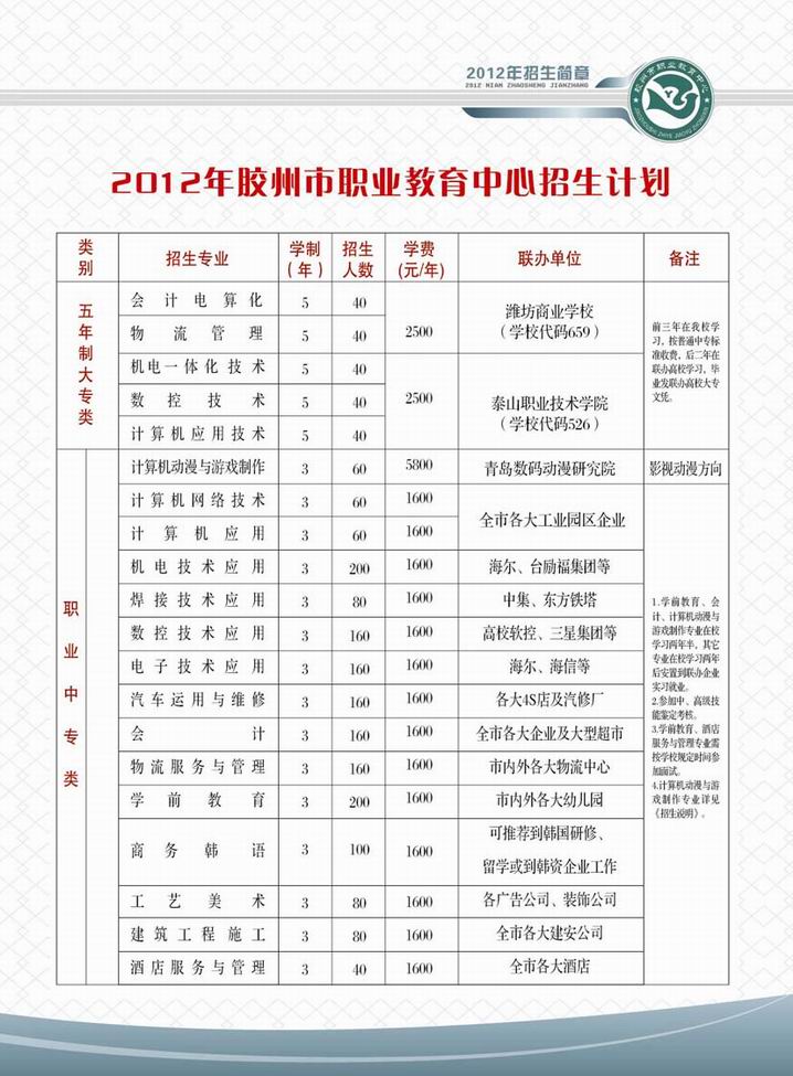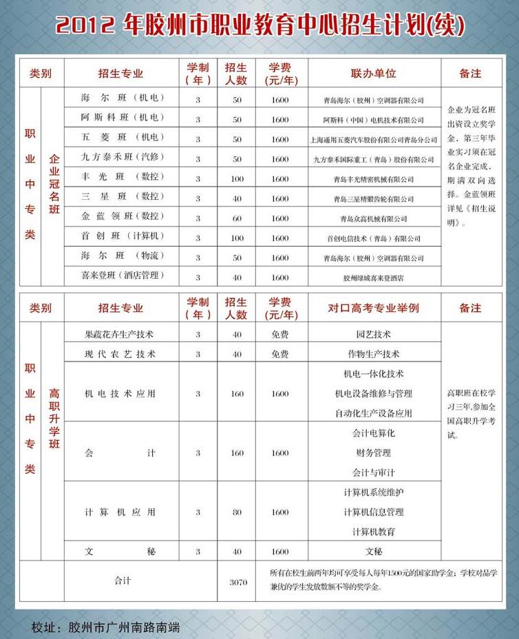 膠州市職業(yè)教育中心2012年招生說明