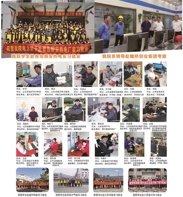 近年來電力工程系依托辦學優(yōu)勢,適應市場發(fā)展的需求,大力加強新能源科學與工程、火電廠熱力設(shè)備運行與檢修、火電廠集控運行、發(fā)電廠及變電站電氣設(shè)備安裝與檢修、供用電技術(shù)、生物制藥、幼兒教育、計算機網(wǎng)絡(luò)應用、電子商務、新能源汽車、人工智能、工業(yè)機器人等方向的專業(yè)建設(shè),簽訂校企合作協(xié)議。大力推進電力“新型學徒制”教學精品班,深化工學一體化教學。秉承校企合作、高薪就業(yè)、終身服務的理念,先后與省內(nèi)外央企、國企、地方國企、大型民營企業(yè)等110余家知名企業(yè)(中國節(jié)能集團、青島電廠、日照電廠、海信集團、川能集團、世界五百強魏橋集團、京東集團、格力集團等),簽訂了合作培養(yǎng)協(xié)議建立良好的培訓就業(yè)關(guān)系,學生畢業(yè)即就業(yè)。