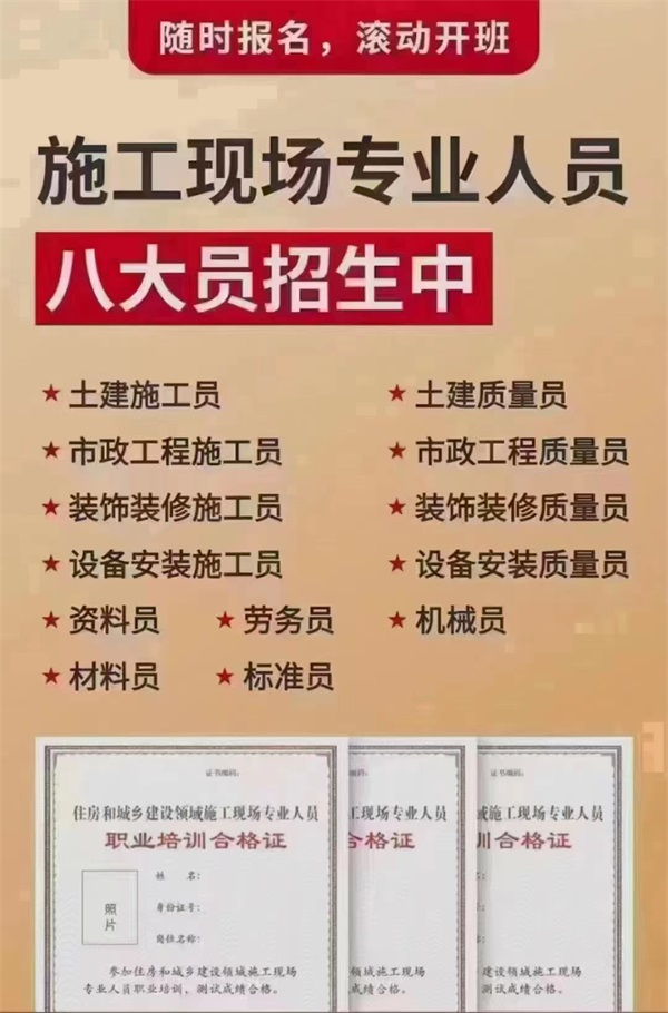 八大員證書(shū)項(xiàng)目各地市住建部門(mén)八大員專(zhuān)業(yè)報(bào)名、培訓(xùn)、鑒定考試,信息咨詢一對(duì)一服務(wù),解答學(xué)員問(wèn)題。