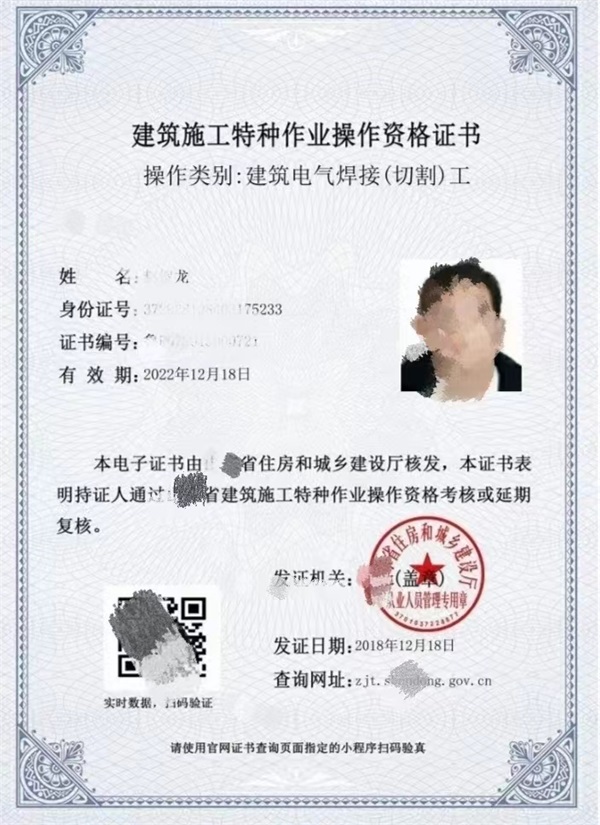 (4)證書(shū)鑒定部門(mén):應(yīng)急局(原安監(jiān)局)特種作業(yè)電子版卡操作證,質(zhì)監(jiān)局特種作業(yè)操作證(大綠本)不含證書(shū)鑒定費(fèi)。
