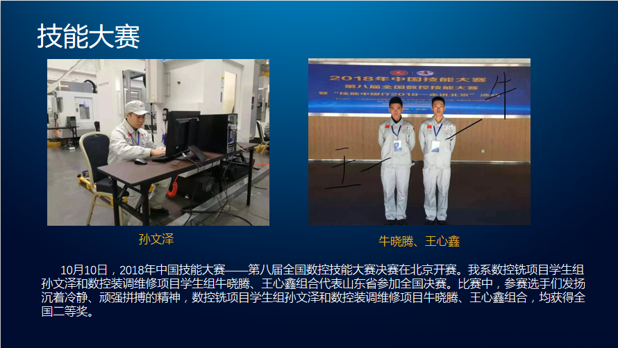 淄博市技師學(xué)院智能制造工程系是學(xué)院骨干系,是學(xué)院歷史長(zhǎng)、技師學(xué)生多的系部之一,國(guó)家高技能人才培訓(xùn)基地、國(guó)家人社部教育教學(xué)一體化試點(diǎn)專業(yè)、山東省特色名校特色專業(yè)、齊魯特色技能大師工作站,F(xiàn)有高級(jí)、技師專業(yè)8個(gè),其中數(shù)控加工專業(yè)是山東省首批百?gòu)?qiáng)專業(yè),機(jī)械設(shè)備維修專業(yè)是山東省重點(diǎn)和百?gòu)?qiáng)專業(yè)。
