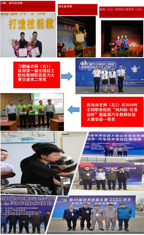 教師在2012年淄博市“廣爾杯”青年技能大賽中,囊括了教師組前四名及學(xué)生組前三名,2011年、2012年、2013年在第一屆、第二屆、第三屆全國職業(yè)院校教師教學(xué)技能大賽中,6名教師先后獲得了4個一等獎、2個二等獎,