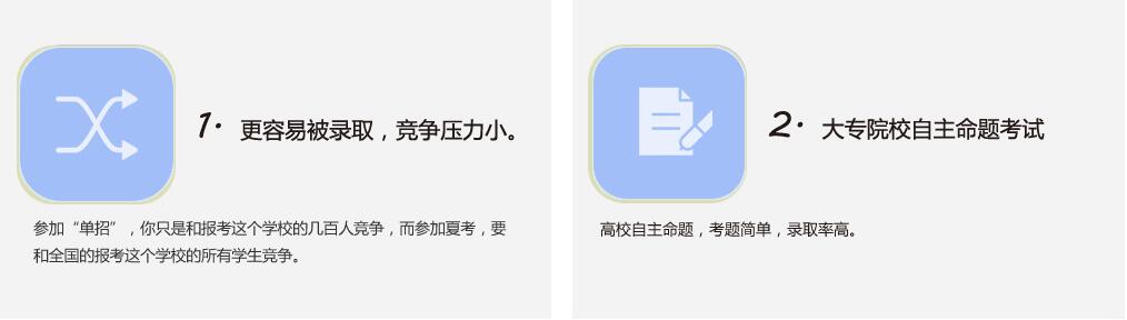 學(xué)生除了報(bào)考春季高考外,還可同時(shí)報(bào)考夏季高考,多一次升學(xué)機(jī)會(huì),對(duì)于成績(jī)不是很理想的學(xué)生,考取本科院校相對(duì)要容易。