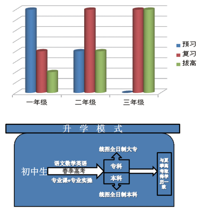 學(xué)校具備多年升學(xué)經(jīng)驗良心打造教師團隊,配備大量“雙師型”教師為學(xué)生的升學(xué)提供優(yōu)質(zhì)保障,全部專業(yè)年升學(xué)率“?苹具_到97%-99%”本科基本達到“33%-46%”學(xué)校采取“年級分化制”并貼合山東省春季高考考綱制定年級專項教學(xué)計劃為學(xué)生升學(xué)之路保駕護航。