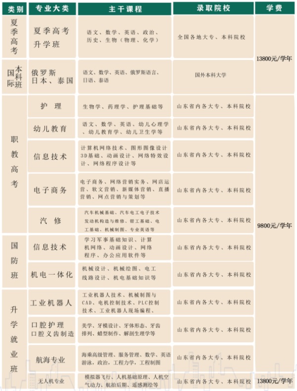 夏季高考升學班3+3,3+4;參照重點高中管理及教學模式,針對國家夏季高考考試大綱開展教學任務,使學生通過夏季高考考入理想大學。夏季高考是具有同等功能的高考制度。