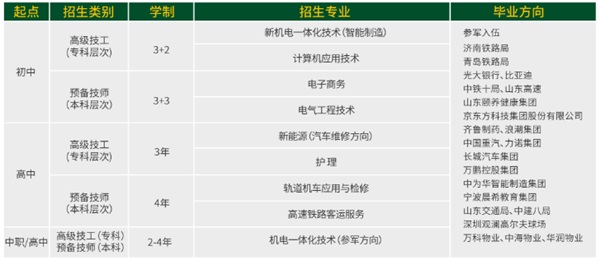 中級(jí)技工(中專層次):招收初中畢業(yè)生,學(xué)制3年;高中畢業(yè)生學(xué)制2年。