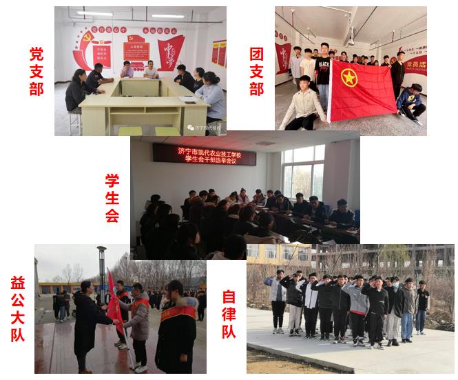山東現代科技技工學校建有黨組織、團組織、學生會、益公總隊、自律隊以及各種社團,學校堅持中國共產黨的領導,培育優(yōu)秀學生,帶動全體學生團結友愛、積極進步、奮發(fā)向上、好學有為,使學生參與學校民主管理,維護學生合法權益,豐富校園文化生活,提高學生綜合素質,認真執(zhí)行和貫徹黨的基本路線、方針、政策,引導學生弘揚益于公眾、博愛善行、益于社會、德厚文明的精神。
