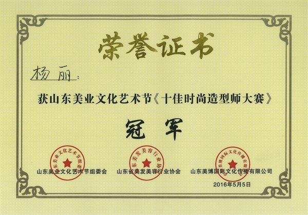 2019、2020、2021年被山東省美發(fā)美容行業(yè)協(xié)會(huì),泰安市美容美發(fā)行業(yè)協(xié)會(huì)評(píng)為“年度先進(jìn)培訓(xùn)學(xué)!